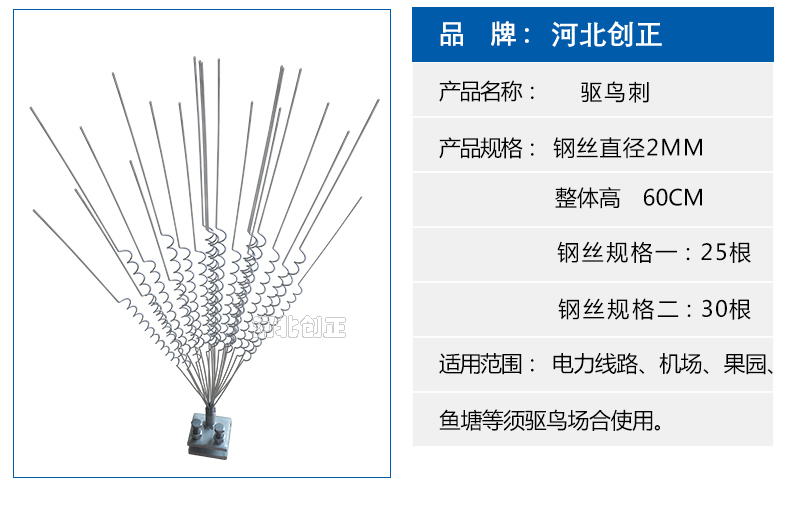 1、驅鳥刺采用Ф3-4的冷拔鋼絲制作。